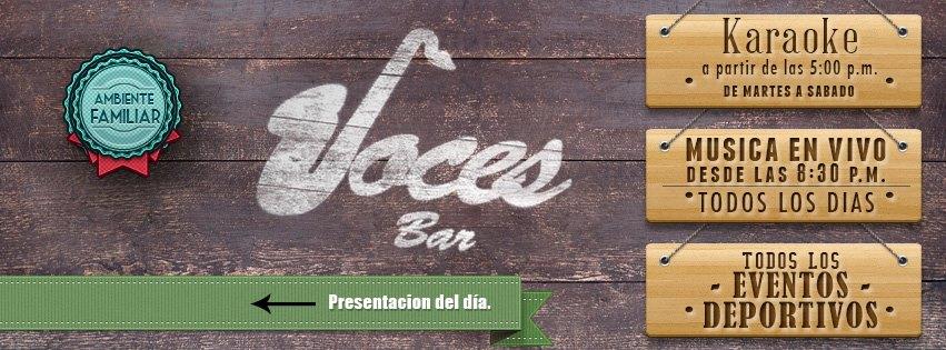 Voces Bar es un restaurante bar con 12 años de experiencia en donde podrás pasar un rato entretenido junto a todos tus seres queridos gracias a que aquí cuentan con música en vivo de distintos géneros todos los días, además de que tienen la transmisión de todos los eventos deportivos y karaoke.